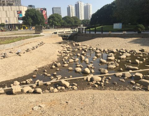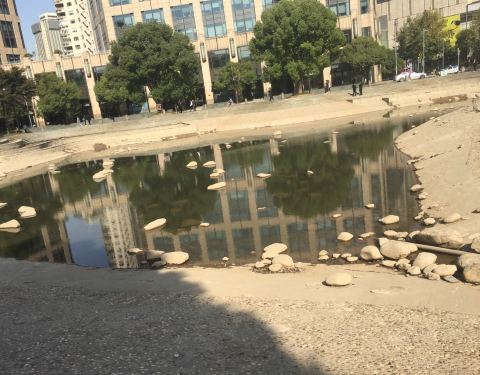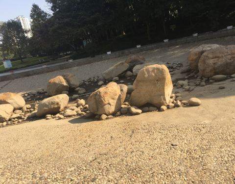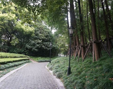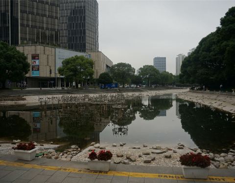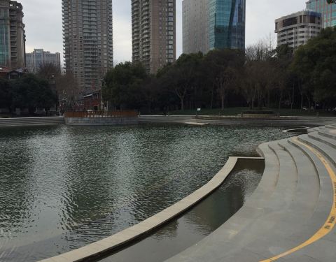 在新天地旁边,周围都是商业设施或近代建筑,这片周长近一公里的城市绿地,给拥挤的上海城区带来非常悠闲美丽的环境空间。走在公园中被高大树木庇荫的步道里,空气清新,感觉与旁边的闹市完全隔绝。不过挺奇怪,中心湖水位很浅,裸露出很多大石头,不清楚是故意凸造型还是为保安全了。