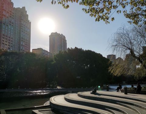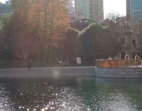 开放式的公园,离新天地很近,有人工湖,绿地,绿色植物也很多。在市中心有这样一个地方,不错哦开放式的公园,离新天地很近,有人工湖,绿地,绿色植物也很多。晚上还有灯光,周围交通方便,看到好几只猫,猫咪不怕人的。在市中心有这样一个地方,不错哦