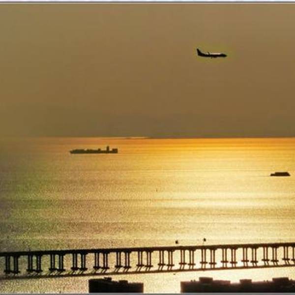 ...,大铲岛小铲岛以及远处香港大屿山,这里是观赏日落的好地方,运气好可以拍到降落飞机穿越落日的景观