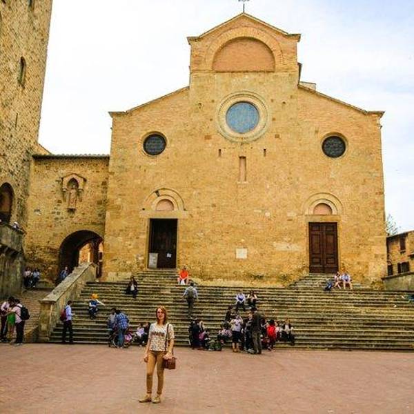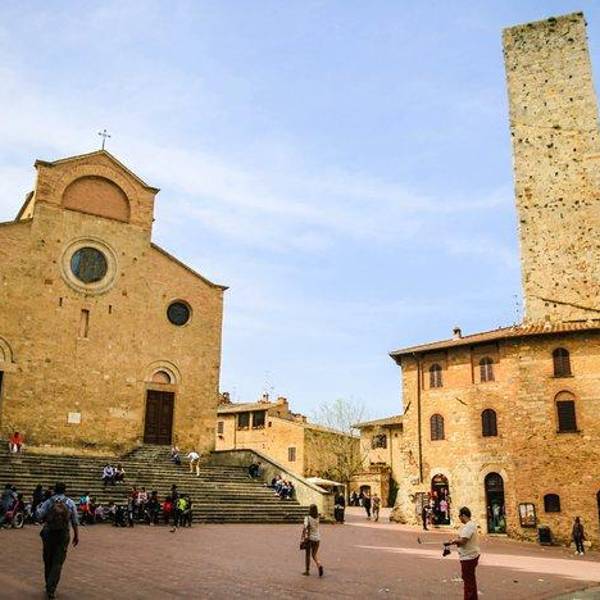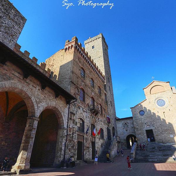 水景广场上旧矗立这圣吉米亚诺大教堂,又名 圣母玛利亚升天教堂 Collegiata di Santa Maria Assunta 是古城内最大的教堂,教堂始建于12世纪,是一座罗曼风格的教堂。教堂内部的博物馆藏有众多中世纪和文艺复兴时期锡耶纳画派的作品,其中比较有名的是Pier Dandini的名作《圣母生子》。