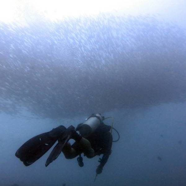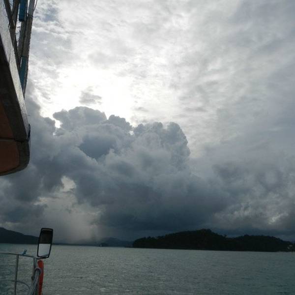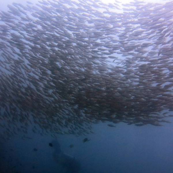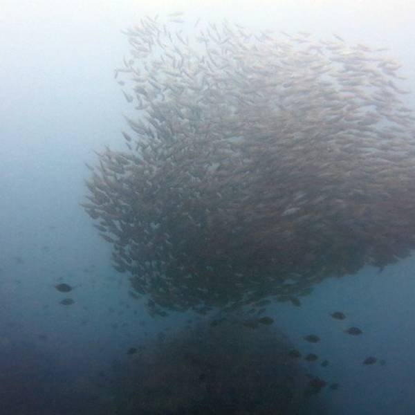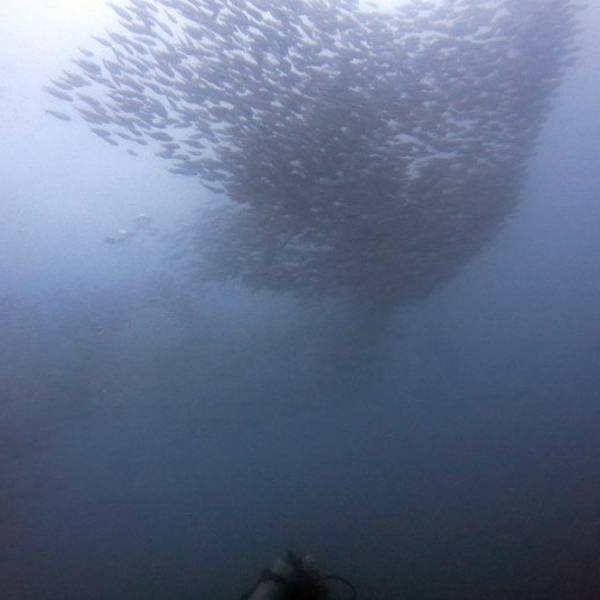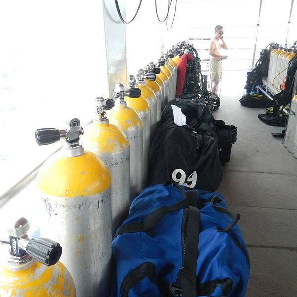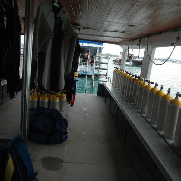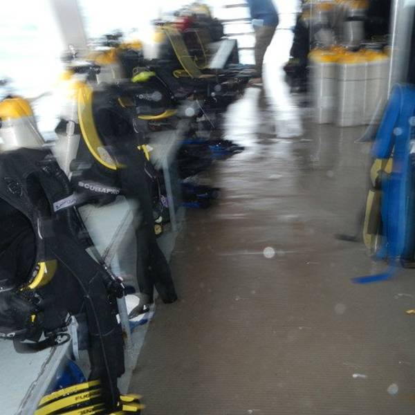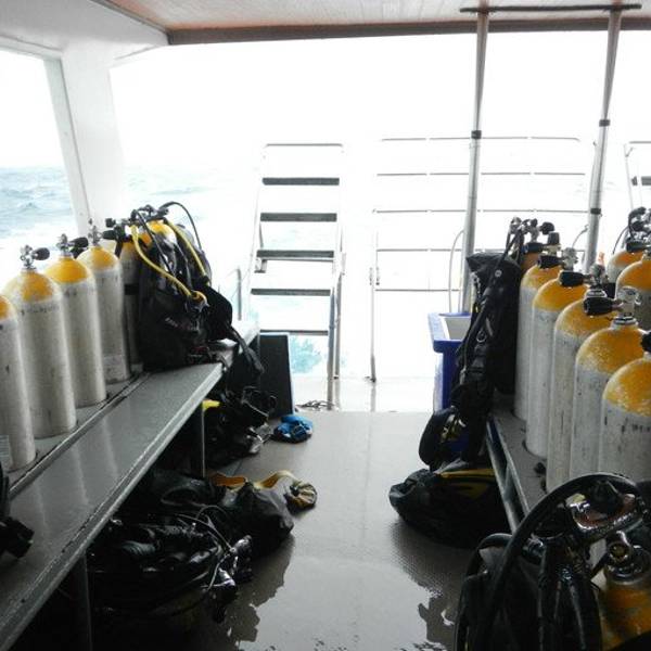 自己打装备,自己收拾自己的装备已经不知道是多久前的事了,忘的都差不多了,上船开稳后,大家都自己打装备,不像在菲国的时候,有小工帮我们打装备。船行三个小时,我们终于到达了PP了,可是雨下的也非常的吓人,看看我们的船舱已经被雨水给淹没了,船晃的也很厉害,最安全的就是现在赶紧下水。风大浪大,水下的环境也不是特别的理想,流大,而且是强流,拍照比较困难,能见度也不高,看来还是人品不行呀。今天在船上还碰到两个香港人(1男1女),竟然是来做体验潜水的,第一潜下水上来后,看到男士已经脸色煞白了,不知道是因为晕船的原因还是因为水底流大,害怕了。