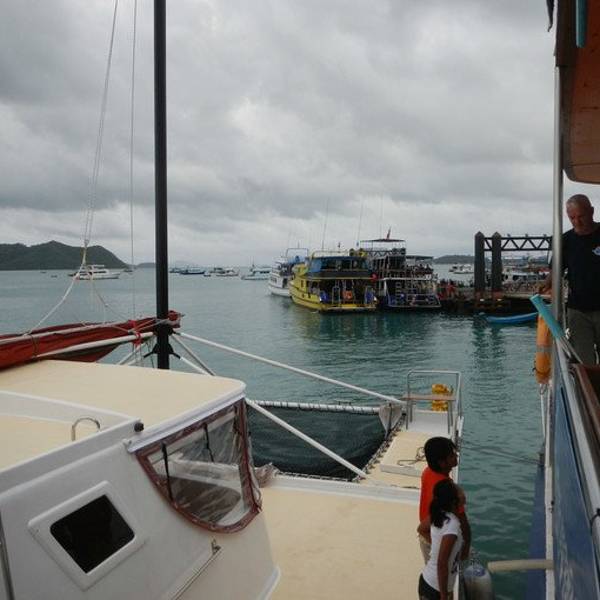 实用 竟然是来做体验潜水的,第一潜下水上来后,看到男士已经脸色煞白了,不知道是因为晕船的原因还是因为...今天木妈的行程是PP岛一日三潜,又来到了这个熟悉的码头,依旧下车有人点名,分别找自己的教练,并且坐车 到码头上船。图片上这个老外真心特别没有风度,下船的时候虽然下着大雨,本来我走的就是有点慢,他拿着装...今天木妈的行程是PP岛一日三潜,又来到了这个熟悉的码头,依旧下车有人点名,分别找自己的教练,并且坐车 到码头上船。图片上这个老外真心特别没有风度,下船的时候虽然下着大雨,本来我走的就是有点慢,他拿着装备在后面用力的撞我!!所以提供广大的民众,不是每个外国人都很绅士的,大多还都是挺坏的看看我们的船,现在还风平浪静,一会儿出了海湾,就不是这么回事了,那个暴雨呀,连JACKY都说我们碰到了最不好的天气,冷的很呀。