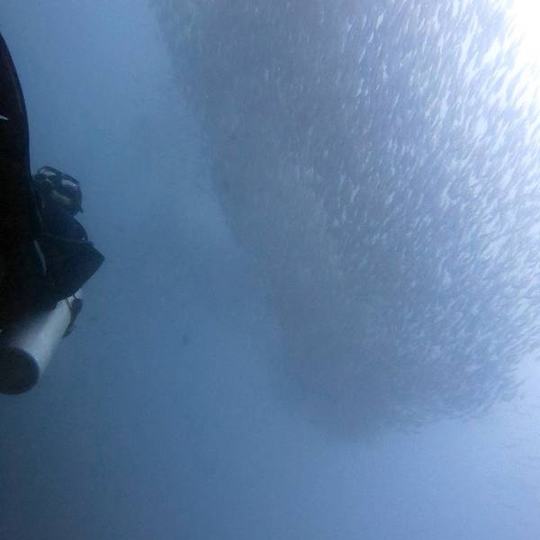 我们结束了今天的三潜,本来应该是在水下做水底导航的,但是流大做导航是回不来的,所以没办法,今天只可以练习中性浮力 和水下摄影和大深度,我们已经完成了深度潜,比较庆幸的是潜了30米无氮醉,很幸运对吧。