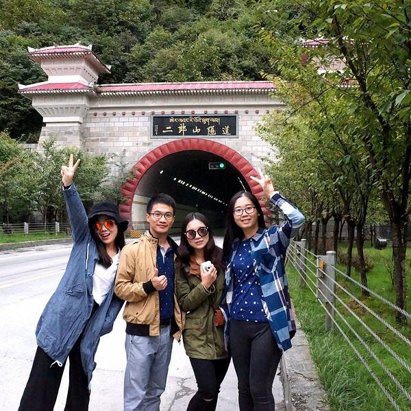 - 伙伴们还是兴奋得在二郎山隧道前拍照留念。