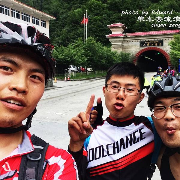 到二郎山隧道的时候,可以发现天已经开始放晴了。二郎山的两面可以说是对立的两个天。一边下雨一边晴天。 二郎山隧道真的好长,来了怎么也要合照,我们快速合照,没有停下来休息,我们马上就开始穿隧道。