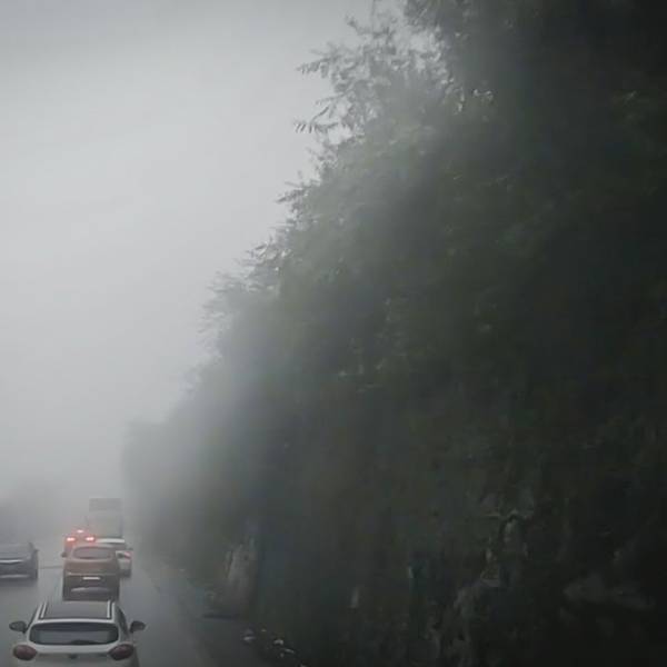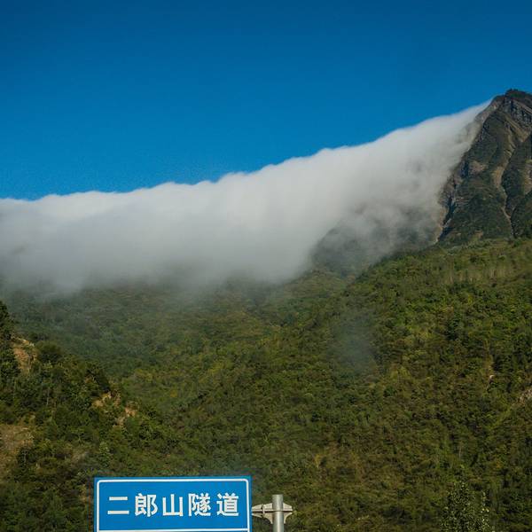 二郎山上还有云海,这样的云海看起来还是挺奇特的。▲ 马上要到隧道了,再把云海拉进些看看▲ 进隧道了,感觉还是挺美的是吧…1km