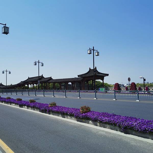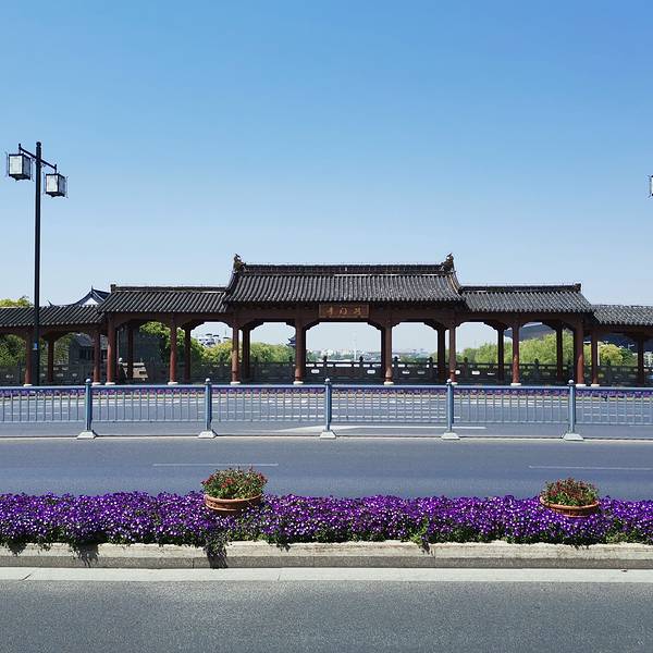 苏州平门桥是苏州古城的一个重要交通节点。重建前的老桥建于上个世纪80年代,见证了苏州的发展,是记忆、是历史。重建后的平门桥宽39米,双向四车道,桥面两侧分设慢车道及廊桥人行道,宽阔的桥身巍然屹立在护城河上,成为苏州又一亮丽风景。平门桥廊桥采用现代技术建造,廊桥景观采用节能灯,以传统大红灯笼作为点缀,桥身侧面采用变色点光源,既有古桥的质朴又具时代特色。