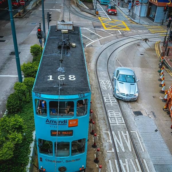 走出美心皇宫,穿过长长的天桥,又见叮叮车。 叮叮车的色彩,最好看莫过那一抹红。 它们每天不停歇地穿梭在老街区,它们已经成为每一个香港人生活中的一部分。