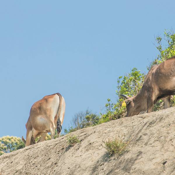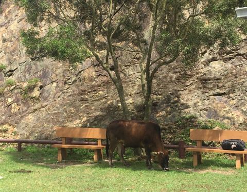 如果你做不到,那我建议你还是去景区旅游把,不要来户外。这里也能遇到牛大哥,这只是在地上走的!还有一群在山上跑~~~不会走楼梯的牛没草吃!北京时间下午14:10,我们来到了万宜水库东坝,