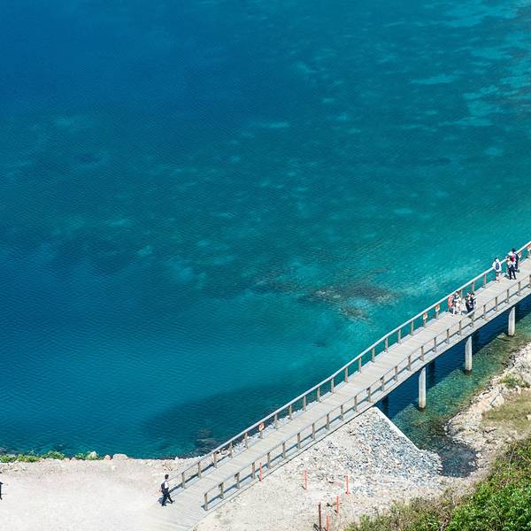 万宜水库每逢节假日的时候都会看到有很多人来这里徒步,整个万宜水库也就是麦理浩径的第一段。从西贡码头搭94号公车,在上窑站下,就是麦理浩第一段的起点,走不了多久就会看到万宜水库那翡翠色的湖水呈现在眼前。每隔500米会看到一个麦理浩径的标距路桩,这500米是指的直线距离,所以会觉得有时候500很近而有时候又很远。经过了万宜水库的西坝一直到终点东坝,尤其是在东坝那里会看到很多的地理形貌,这一片也是属于香港地质公园的一个部分。六角形的岩柱、海蚀洞、破边洲,整个精华部分都在东坝,所以一定要坚持到最后,从起点到东坝大概步行两三个小时。在东坝,如果时间不是太晚,都会有很多的出租车停靠在那里。如果没信心再走回来的话,那就打的吧。