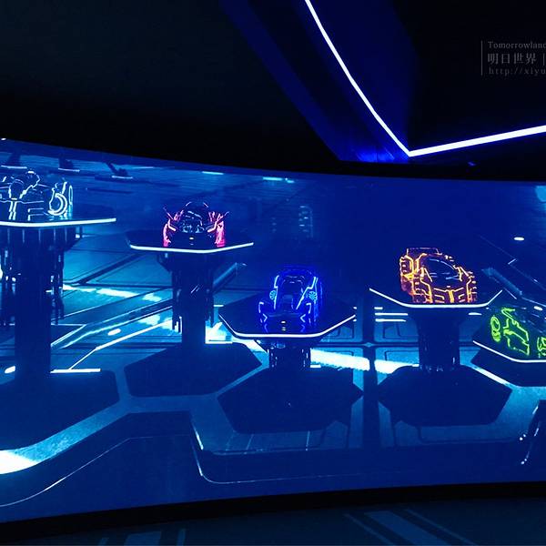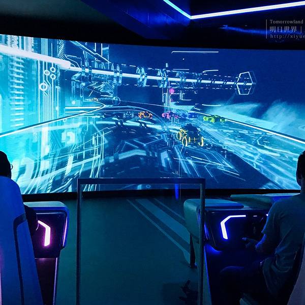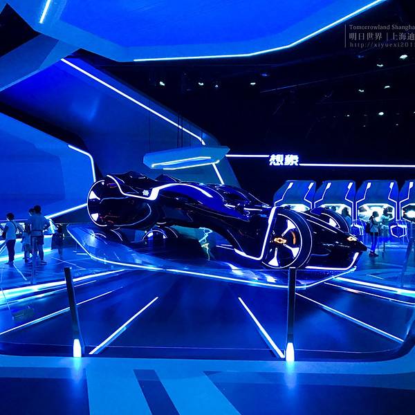 明日世界是未来主题的区域,建筑未来感十足,非常炫酷,晚上亮灯效果特别好。白天没有去不知道什么样子。【创界:雪佛兰数字挑战】9月份新出的项目,里面其实是一些概念车的展示和两个互动游戏。玩了开车的那个游...