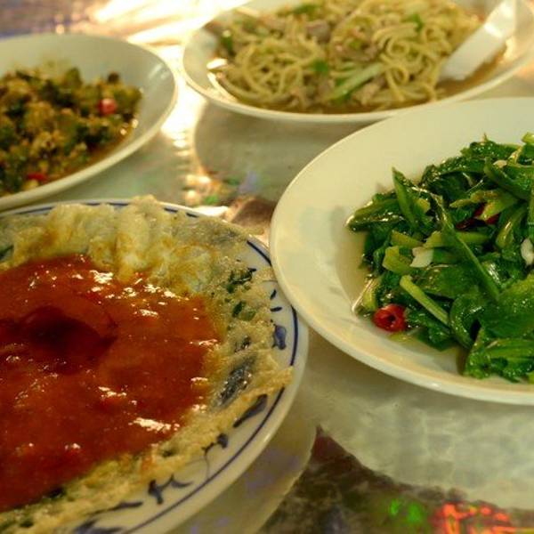 接下来往左边会看到一间阿兰快炒,青菜海鲜蚵仔煎炒面炒饭啥都有。快炒店适合多几个人吃,会觉得性价比很高。我点了苦瓜咸蛋,炒面,蛋煎和炒油麦菜。苦瓜咸蛋是我去快炒店必点的菜,但是这一家略有不同的是他放了黄豆酱,第一次吃这种味道我不是很喜欢,黄豆酱的味道整个盖住了我的咸蛋黄味道,而且苦瓜炒到软趴趴好像隔夜菜。其他三样菜点的都不错,炒面很入味,蛋煎的酱很好吃,蛋的边边也有煎到脆脆的感觉特别棒,油麦菜更是超级新鲜,又脆又甜。整顿饭花了240元台币而已,苦瓜咸蛋就占了100元,下次不点这个。
