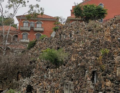 鼓浪屿十二洞天位于福建省厦门市鼓浪屿南部,也是菽庄花园的其中一景,是菽庄花园的重要组成部分。是由太湖石砌成三十米高的假山,山上布置有十二生肖的雕像,又有假山石洞,因此得名。