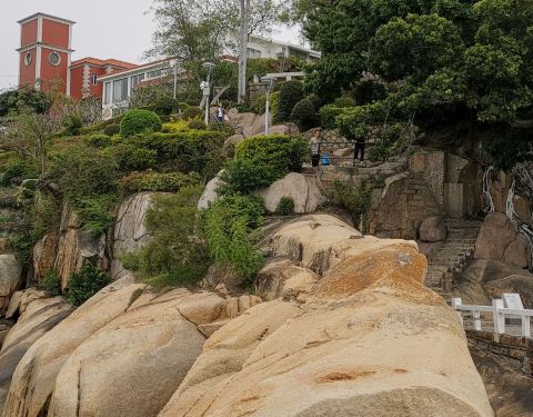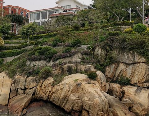 菽庄花园里面的十二洞天,真是园林胜境,假山奇石别有冬天,可攀爬穿行于上,留意十二生肖雕塑,特别有趣。看,鼠年老鼠雕塑找找看哟,再找找自己的生肖。登顶,可眺望整个菽庄花园,远观茫茫大海,美!