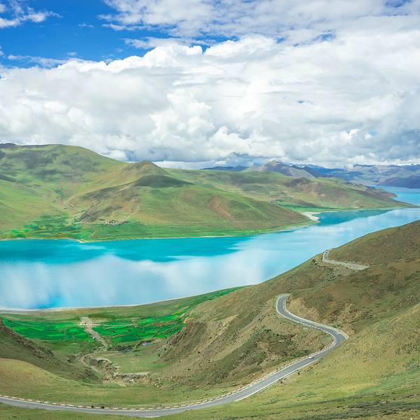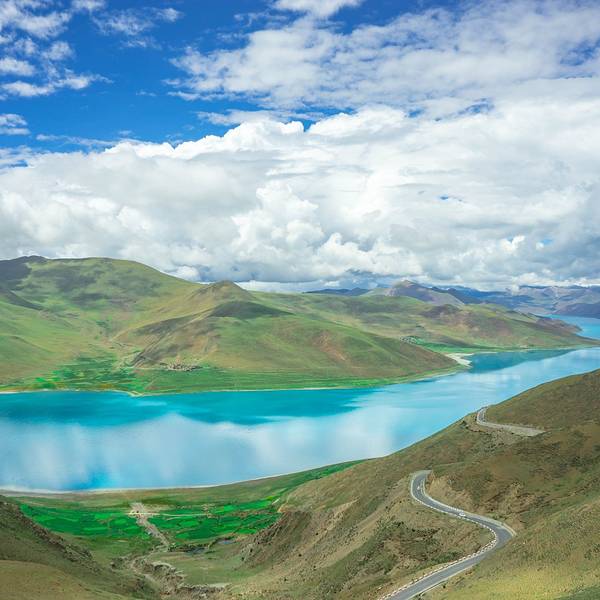 羊湖的美真的在于不同时间的阳光照在湖面映出不同的蓝。