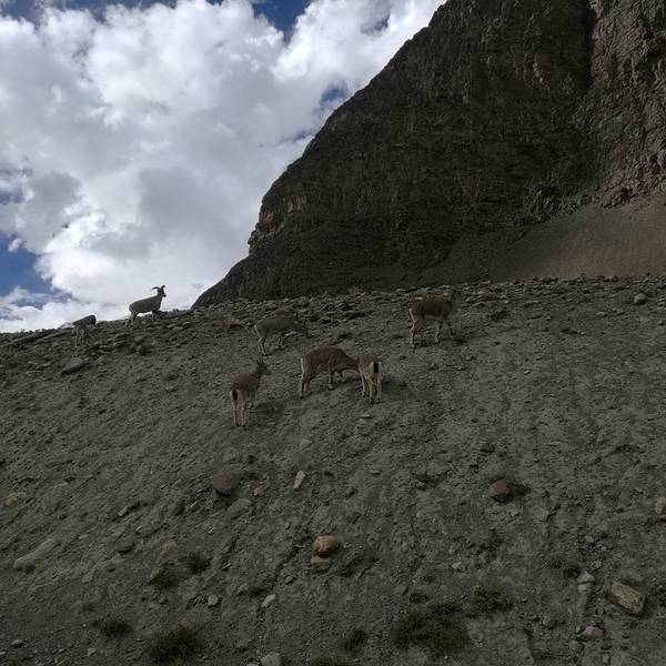 已经换上了最厚的冬装,还是冷。后来干脆下来推车走,省点力气,也免得脚尖被冻僵。直到中午时候温度才有所回升,离垭口也不远了。