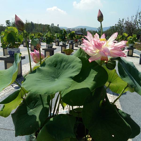 把荷花以盆景的方式展现给大家,更独特新颖,吸引人眼球。