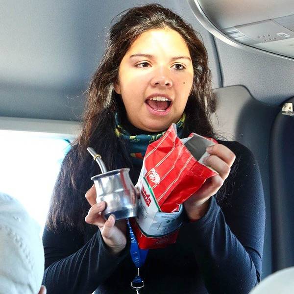 下船后,找了一辆中巴,游览蓬通博企鹅保护区(Punta Tombo Penguin Reserve), 大约两小时的车程。 导游英文十分流利,在车上给我们介绍南美饮料:玛黛茶(Mate). 茶杯里几乎是泡满了玛黛,然后用吸管慢慢吸。玛黛茶里咖啡因充沛,南美人喜欢互相传饮,导游递给我们她的玛黛茶,没人敢接手。
