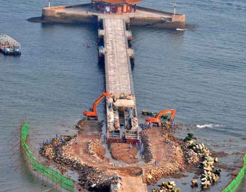 回澜阁就在栈桥的尽头,是个小阁楼,当初建的时候二楼可以坐在哪里看海,欣赏美景,现在二楼关闭了,...