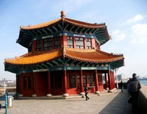 这里绝对是青岛海边景观的标志,很值得拍照留念回兰阁是青岛栈桥尽头的2层观海楼阁,他建成至今已经有100多年的历史,是一座仿古型的楼阁,非常的漂亮。回兰阁的二层是可以登上去的,不过需要在每天16:30之前。这里绝对是青岛海边景观的标志,很值得拍照留念。