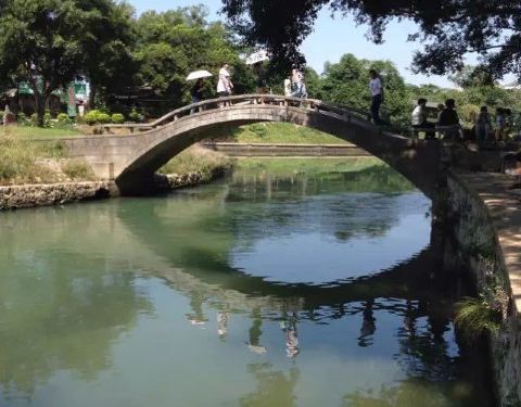 走近穿山公园大门,又看见了“售票处”。因为汽车可以从大门直接开进去,我们也就从人行道径直走了进去,没有人阻拦。 穿山公园面积并不大,主要观赏穿山岩和塔山。进园后过拱桥到江对岸,在合适的角度可以通过穿山岩贯通的石洞,望到对面的蓝天(阴雨天看到灰蒙蒙的天)。沿岸开了多家鱼庄,但生意很萧条。 景点最多一小时可以玩完(除了要登山锻炼),旅行团最多可能给40分钟。出公园大门时看了看票价:74元,真是票价不菲唷!