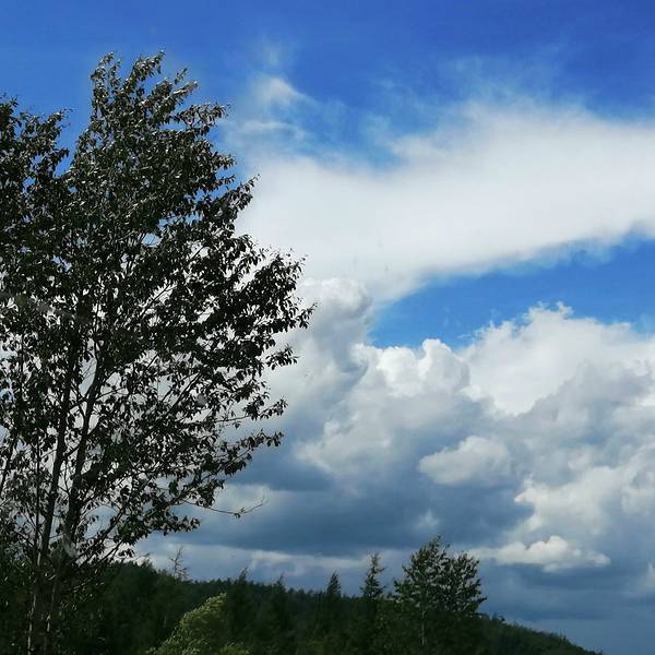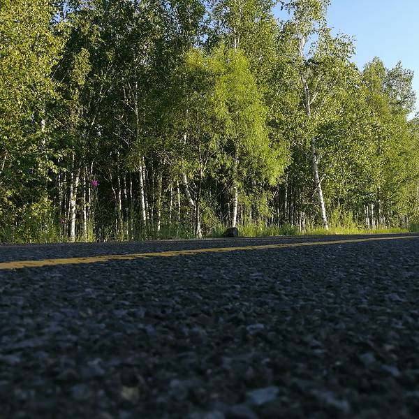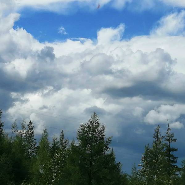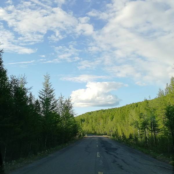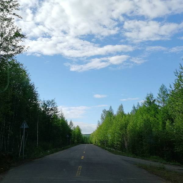 路上在风景超美,中间是白云蓝天,两边是大森林! 展开
