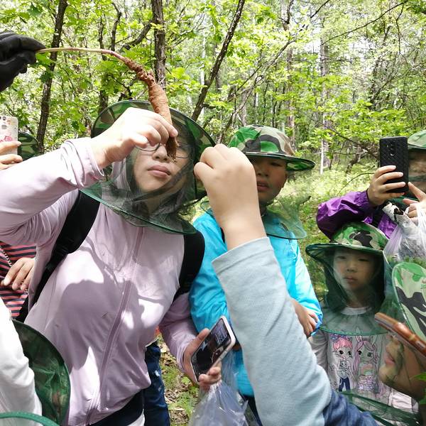 有护林员带我们一起认识植物。还采了蘑菇,挖了人参。