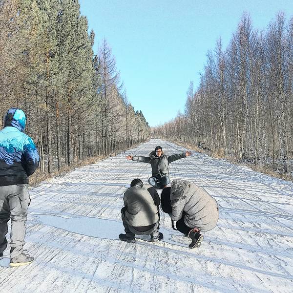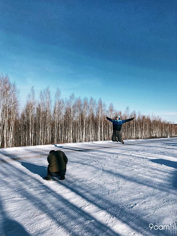 坐在雪地上,是真的有点凉一路上会穿越大兴安岭森林,见识最美丽北国风光,有些野蛮,又有些天然