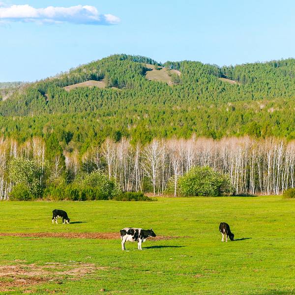 沼泽地里的草还是枯黄的颜色,而远处的树林已是绿意盎然,大自然的季节更迭,有规律地,不紧不慢,也...进入森林区域,一排排高高的树木在车窗外不断后退,它们已经提前感知到季节的变化,比草原上的小草儿更快些,已经长出了新绿。说起 大兴安岭 ,无人不知,因为地理课上听老师提起了无数遍,可这么多年过去了,它...进入森林区域,一排排高高的树木在车窗外不断后退,它们已经提前感知到季节的变化,比草原上的小草儿更快些,已经长出了新绿。说起 大兴安岭 ,无人不知,因为地理课上听老师提起了无数遍,可这么多年过去了,它是什么它在哪里,已经没有半分印象,这个名字既熟悉又陌生。它是 兴安 岭西部的组成部分,全长1400多公里,在 黑龙江 的 大兴安岭 地区和 呼伦贝尔 的 东北 部,是我国面积最大的原始森林,也是地理上重要的分界线。小伙伴们都有发现美的眼镜,看到这里都不约而同喊着要下车拍照,森林里的沼泽地,深蓝色的水有点深邃而神秘。沼泽地里的草还是枯黄的颜色,而远处的树林已是绿意盎然,大自然的季节更迭,有规律地,不紧不慢,也让这样的风光很有层次感。途经一个农场,成群的牛在绿色的草地上晃着,看来还是一个饭店,原本打算就在这里吃晚餐,一边撸奶牛,但是门口那几只恶犬让我们望而却步。车子往前开一点,我们还是没能忍住诱惑,一个人下车测试看看狗狗会不会飞奔过来,确认安全后我们下车,从侧方向牛群包围。哈哈, 依云 提起她红色的大裙摆向着这只落单了的牛跑去,这气势,这画面,是要去斗牛吗!还好这些牛脾气不大,还呆萌着和她对望,脸上仿佛写着:来啊,我不怕你!这也太可爱了吧!温馨的一幕也被我们捕捉到了,我竟然还安静地坐在旁边看着小牛在喝奶,我就默默看着,不打扰,见证着这样有爱的时刻。 展开