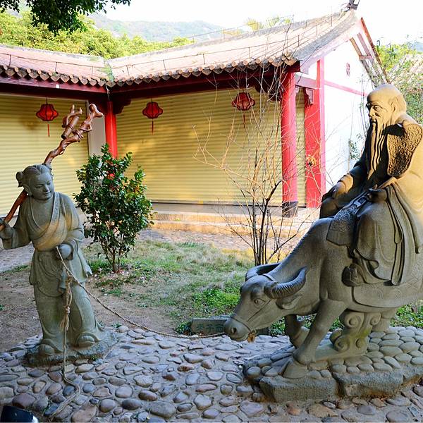 在中国土生土长的道教尊他为教主,并且奉他的《道德经》为主要经典。青牛西去 紫气东来20130212三看老君岩:老君是道教教主,席地而坐,左手扶膝,右手凭几,双眼含笑,须眉皓然,真可谓“风过髯动,指能弹物”。20130212老君岩,原名仙岩,因为有老君造像,遂称为老君岩。