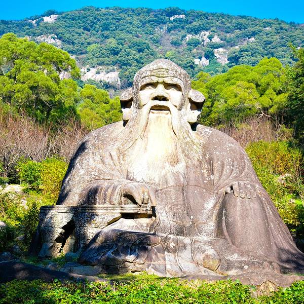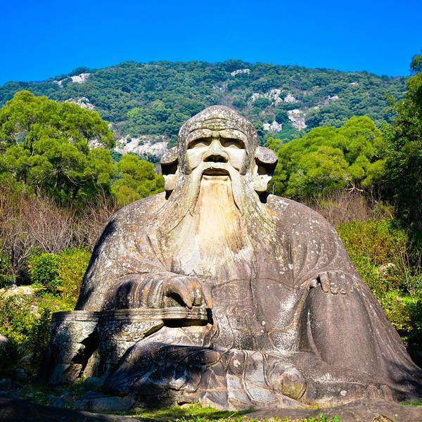道教老君造像为中国最大的道教石雕,道教尊他为教主,奉《道德经》为主要经典道教老君造像为中国最大的道教石雕,道教尊他为教主,奉《道德经》为主要经典。老子的哲学思想在中国占有重要位置,影响十分深远。老君岩已成为著名历史文化名城泉州的旅游热点。石像头戴风帽,额纹清晰,两眼平...道教老君造像为中国最大的道教石雕,道教尊他为教主,奉《道德经》为主要经典。老子的哲学思想在中国占有重要位置,影响十分深远。老君岩已成为著名历史文化名城泉州的旅游热点。石像头戴风帽,额纹清晰,两眼平视,鼻梁高突,右耳垂肩,苍髯飞动,脸含笑容,左手依膝,右手凭几,食指与小指微前倾,似能弹物,背屏青山,巍然端坐,更显空山幽谷,离绝尘世。 展开