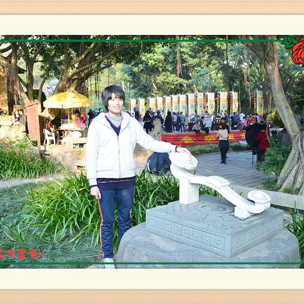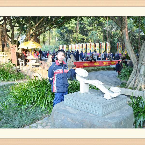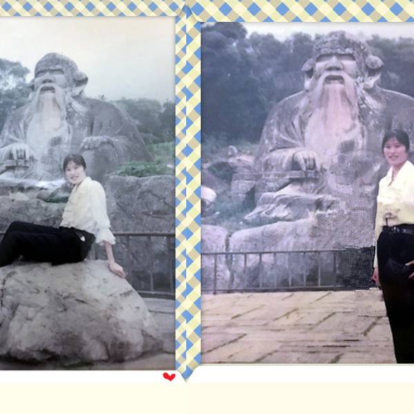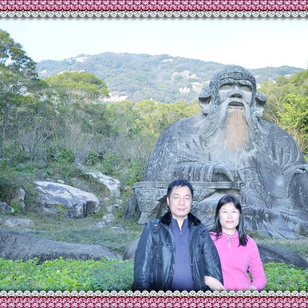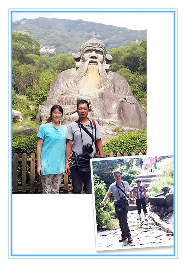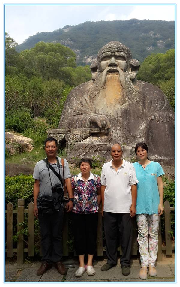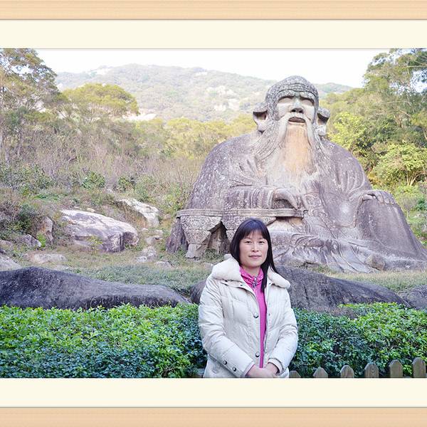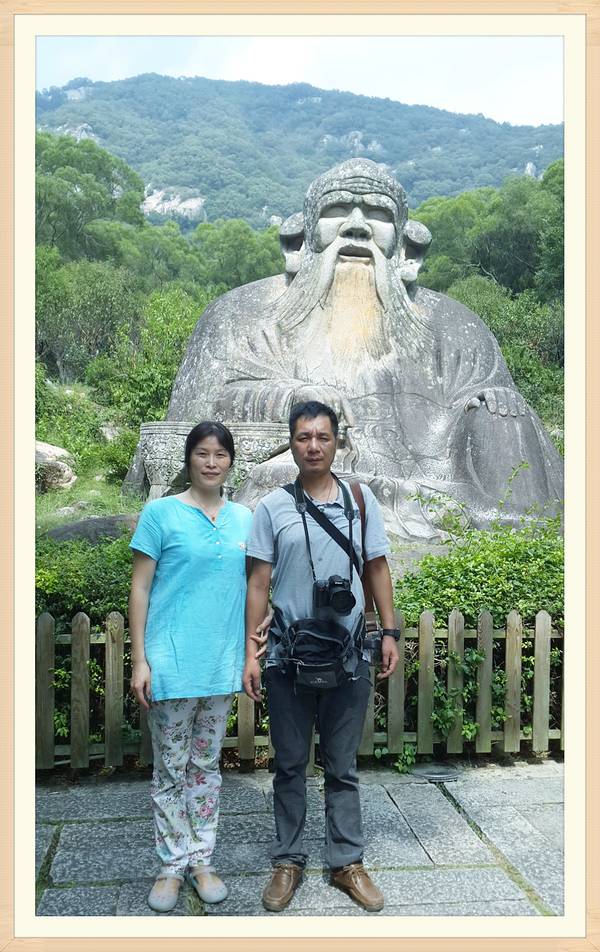“大音希声,大象无形,大言不辩,大智若愚”,“大视”“无视”吧~历经千年风雨沧桑,依然栩翎如生,神采奕奕。“老子天下第一”倒也名符其实。老君岩是由一块天然的花岗岩石雕刻而成。石像呈席地而坐式,高5.63米,厚6.85米,宽8.01米席地面积55平方米,是我国现存最大,雕技最绝年代最久的道教石雕造像~导游说:“青牛西去,紫气东来”,说的呢是一个关于老子的典故喔!据记载,西周末年衰败,老子逐弃周隐居,骑着青牛,悠悠然,出函谷关,关令伊喜见有紫气东来,料定有圣人过关啊,果然是圣人老子,伊喜久仰老子大名,要求老子写点东西给他,方可过关,于是老子提笔作了传世之作——<<道德经>>。好!大家看到上面写的几个字吗,众妙之门,这可是老子的名句哦~清源山老君像原先有一些高大的道观围护,规模宏伟的真君殿、北斗殿等道教建筑慰为壮观,后来道观被焚毁,于是老君岩便从此屹立于天地之间,与大自然融为一体,而这恰巧与老子道法自然的观点不谋而合,达到了天人合一的超然境界。老子姓李,名耳,谥日聃,是我国古代春秋时期著名的哲学家、思想家。