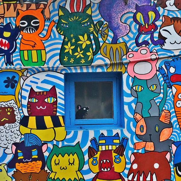 街不宽,是个挺大的一个上坡路。街上的建筑多有涂鸦,非常的漂亮,很适合拍照。刚走进去会看到一家店,里面有各种各样的猫咪饰品,玩偶,玩具,本子,各种周边。进去还有一辆公交车样式的小空间,里面特别多可爱的猫咪,交钱的话可以进去玩。在这里,住着各色猫星人,加绒坐垫,高空楼阁,猫星人或闲庭信步,或闭目假寐,或搔耳弄姿,全然不顾外面围着他们转的迷妹迷弟们!尽显她们的傲娇本色和贵族气质。哈哈哈,喜欢撸猫的真的不要错过哦。我陆陆续续去过几次,每次都有新的惊喜,店铺的更新或者是装修风格的翻新,都让人经验,还是那些文艺的店铺,面对的是亲切朴实的爱猫人。