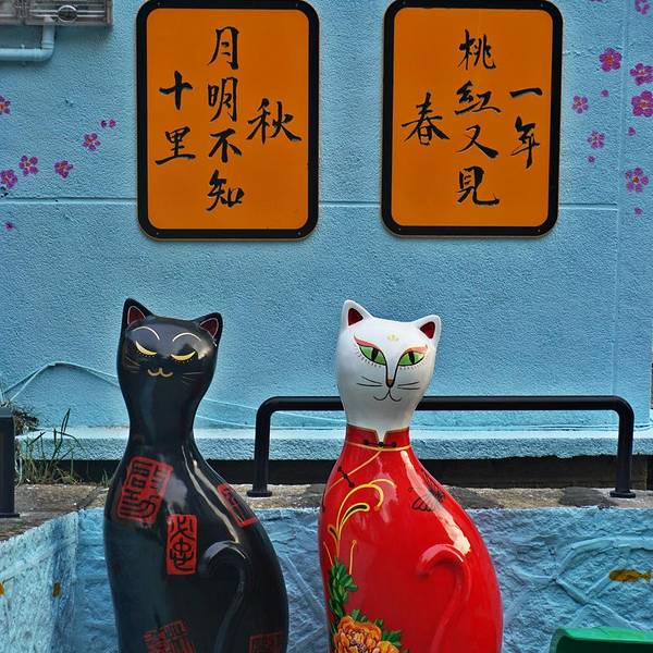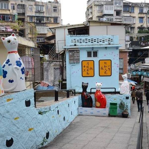 小到电线杆、配电箱、电话亭甚至小吃店的窗台,都被粉刷上了各种萌猫咪的卡通形象涂鸦。原本不起眼的小巷,陆续见诸各类媒体报道,猫街美名,不胫而走。关于猫街的传说坊间众说纷纭,至今流传最为广泛的是,很久以前厦港区域的渔业繁荣,在没有现代冷冻设施之前,渔民们多在顶澳仔向阳坡地晾晒渔获海产。猫的天性不亲水,它们只有在食物匮乏时才吃鱼。为保护鱼获,当地居民曾经饲养大量猫咪专职捕鼠,猫多人少,蔚为猫街。