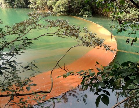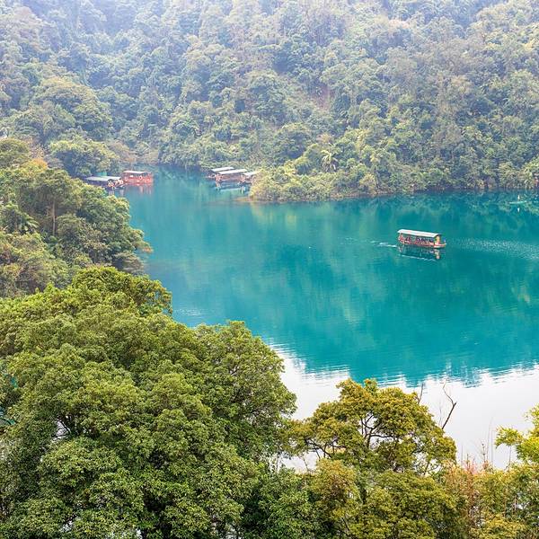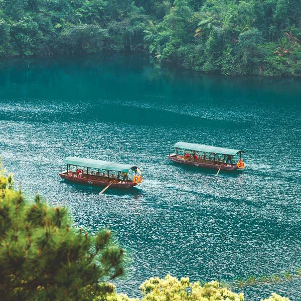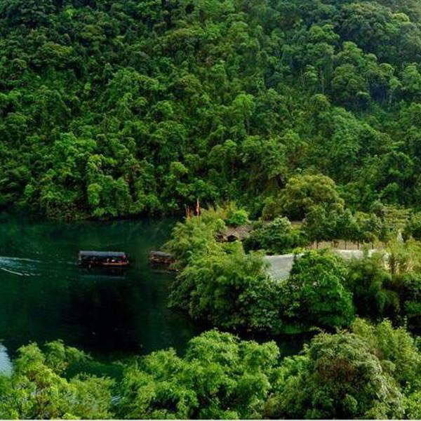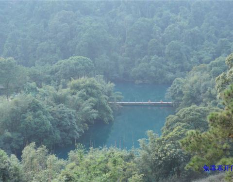 从宝鼎园望下去,一潭碧水,仿佛一块巨大的...从宝鼎园望下去,一潭碧水,仿佛一块巨大的祖母绿镶嵌在两山之间。看起来有种置身九寨沟的错觉。