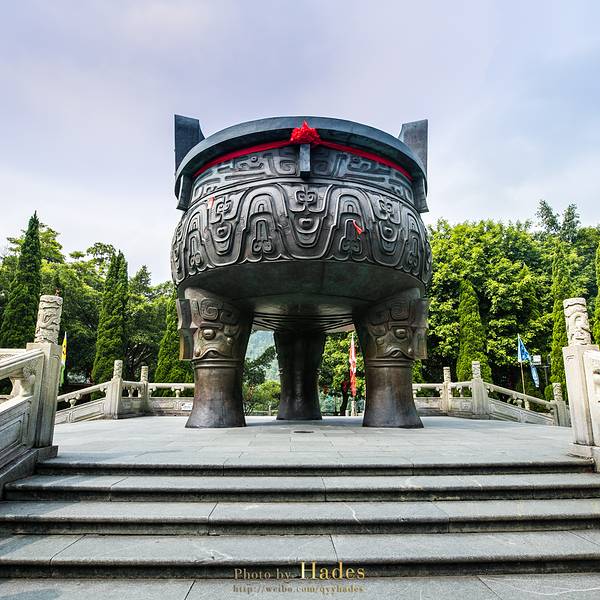 鼎高6.68米,口径5.58米,重16吨,为世界之最。就要到宝鼎园了。这个中国最大的鼎。最大的砚台然后继续上去。就要到宝鼎园了这个中国最大的鼎。九龙宝鼎。鼎高6.68米,口径5.58米,重16吨,为世界之最。从高处看鼎湖的湖。右边可以看到蝴蝶谷最大的砚台。
