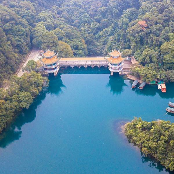 清初岭南著名诗人陈恭尹曾写过一首叫《端州华严庵送何孟门、陶握山、王紫·游鼎湖》的诗,其中加有注文说:“栖壑大师以(桂王)行宫在端州,改鼎湖山为天湖。”可见改叫鼎湖山为天湖山,明显带有纪念南明永历皇帝的意思。但是随着永历政权灭亡和清朝统治走向稳固之后,天湖山这个名称也就逐渐就无人问津了。我们最先到达的是宝鼎园。宝鼎园以展现中国古代鼎文化为主题,将中国著名的青铜器鼎、鼎文化与自然和山水文化融为一体。各式各样的鼎是这里的特色。广场中这个九龙宝鼎足有四五人高,是世界上最大的鼎。从高处航拍,中央红色的圆点便是巨鼎,人们喜欢把许愿彩带抛到鼎上,久而久之,从上面看,便成了一个布满红色彩带的圆鼎。《广东通志》卷十二之山川志云记载:“顶湖山在(肇庆)城东北四十里,高千余丈,山顶有湖,四时不竭,山半有白云古刹,绕寺产佳茗。”宝鼎园可以从高处俯瞰鼎湖。这个位于山顶的湖确实就像鼎内装的水,难怪有鼎湖一名。湖中有画舫游船,却没什么游客乘坐,静静地靠在岸边。一众摄影大师,自然能找到不错的拍摄场景,而我也趁航拍的间隙,跟着拍了几张。倒也觉得十分满意。尤其是这个色调,特别有味道。其实我不太喜欢把肤色调得很白,而是喜欢这种比较有质感的颜色。 展开