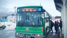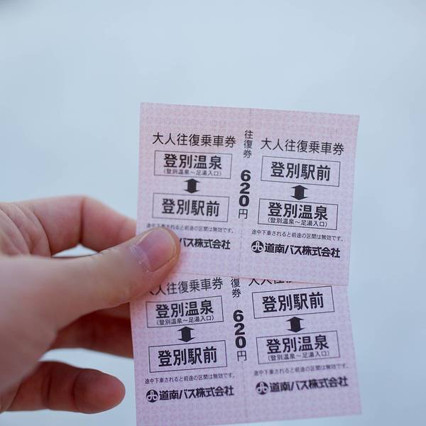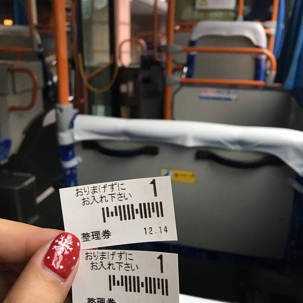 出站之后就有道南巴士到温泉街,从后门上车拿整理卷,下车前按窗边的按钮,司机就会停车,然后从前门下车把整理卷放进机器,把钱给司机!要注意用零钱,太大的面额车上找不开。