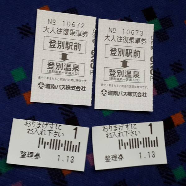 这熊姿 瘆人呀一般等候巴士的车站都有温泉巴士的往返券买的,咱不图他便宜个几十日元的钱,咱图个方便,不用到下车抓着一把角子钱投!整理劵 右上角的是号...算好巴士时间,上JR去登别喽!!