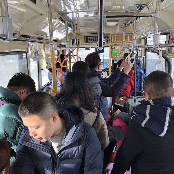 道南巴士上也坐满了游客,听说话基本都是 中国 人。从 登别 站到第一竜本馆还需要坐15分钟的巴士。