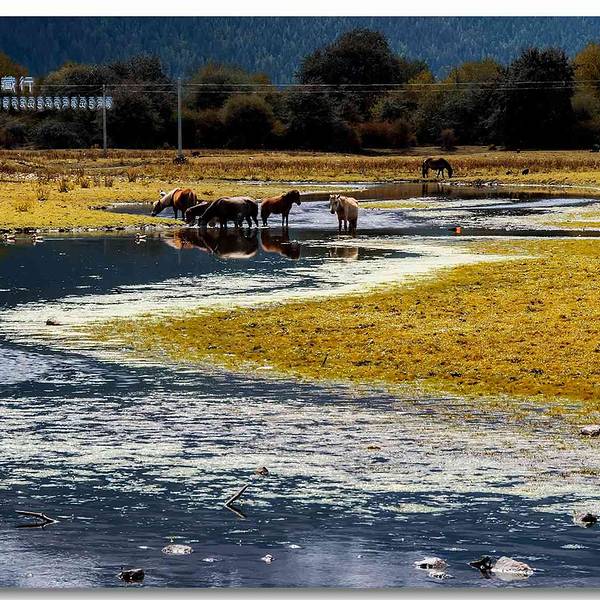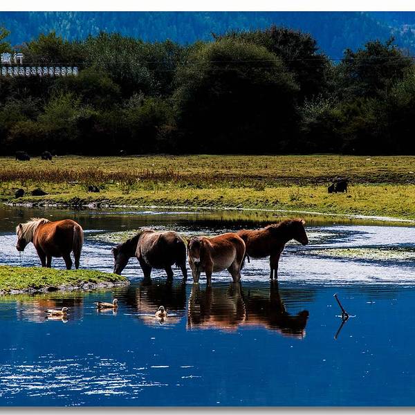 一片时时徜徉着黑颈鹤、赤麻鸭和雪鸽的湿地从村头缓缓铺向湖畔