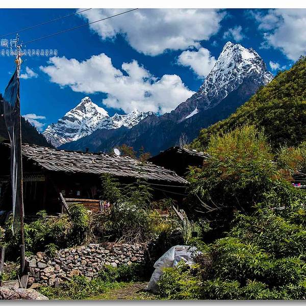 沿着巴松措湖开车到了这个地方,说是中国十大最美古村落之一。 很安静,我们在那里拍照差不多半小时,一个人都没有看到,只有袅袅炊烟和懒懒的牦牛。 有一条小河蜿蜒而去,衬着远处的雪山,有一群牛在漫步,很...