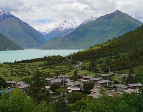 错高村位于巴松措湖的东北角,是一个身处群山环抱中的古村落