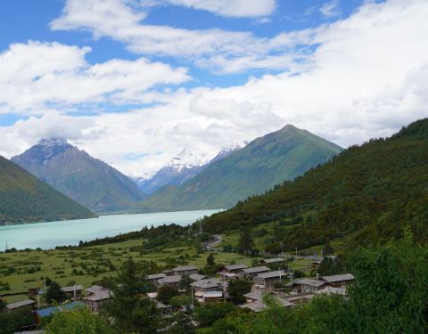 位于西藏林芝“巴松措”湖东北端,背倚雄奇陡峻的雪山——“燃烧的火焰”,面临温润如碧的“巴松措”湖水;一片时时徜徉着黑颈鹤、赤麻鸭和雪鸽的湿地从村头缓缓铺向湖畔