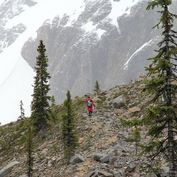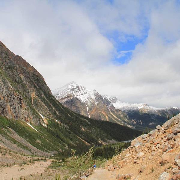 徒步去!只有亲身行走,方能看到世界的美妙!你的能量超乎你的想象! 看天气预报,今天是下雨的。昨晚讨论了一番,决定还是要去天使冰川!既然决定了远方,便只顾风雨兼程! 出了Jasper小镇开上93号公路,不远有一条分岔路往右就拐上了93A,这条路和93号平行一直到Athabasca瀑布。开到Mt Edith Cavel的图标后再往右就走上了这条盘山小路,路窄弯多,开车要小心。到Tonquin Valley的入口,健行线起点是一个很小的停车场,然后一路下上就进入了如诗如画的峡谷之中。 路的尽头最先映入眼帘的悬挂在山崖上的冰川,冰川的一部分挂在半山腰,如同天使的身躯,而山顶的一大片如同张开的双翅,这就是天使冰川。这还不是全部的惊喜,再往前走,在冰川的尽头有一个飘满了浮冰的湖,我们体力有限没有走到这里。