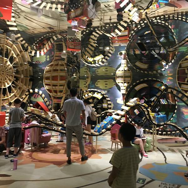- 第四块区域是童书馆,设计的非常童心。很好的利用了镜子的反射增强了整个空间的延展性