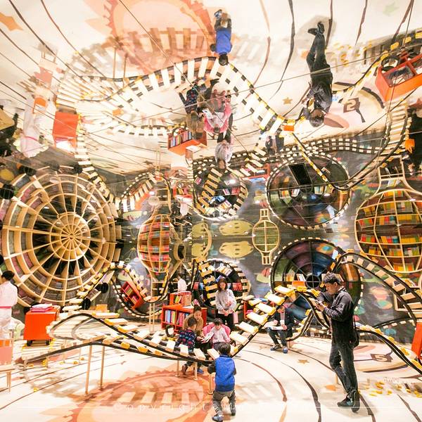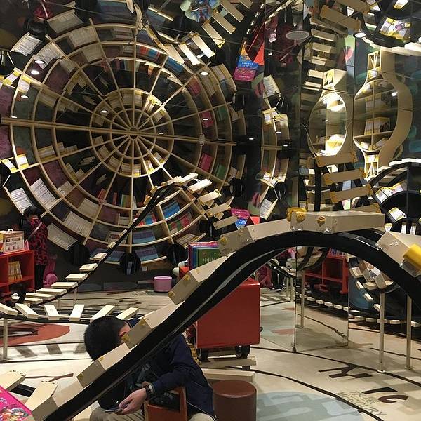 第四块区域是童书馆,设计的非常童心。很好的利用了镜子的反射增强了整个空间的延展性 可以沦陷其中一整天
