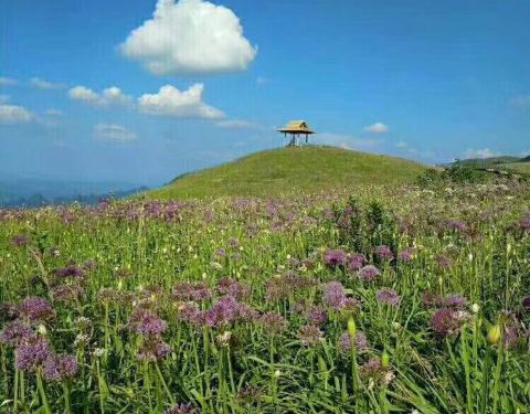 畅游花间,野韭菜花的芳香扑面而来,令游人留连忘返,陶醉其间从赫章县城到大韭菜坪只有30公里,大韭菜坪就是阿西里西天上花海景区,又称大韭菜坪,位于贵州省毕节市赫章县城南部的兴发苗族彝族回族乡境内,距县城30公里,面积30平方公里,是全国唯一的野生韭菜花保护区,主...从赫章县城到大韭菜坪只有30公里,大韭菜坪就是阿西里西天上花海景区,又称大韭菜坪,位于贵州省毕节市赫章县城南部的兴发苗族彝族回族乡境内,距县城30公里,面积30平方公里,是全国唯一的野生韭菜花保护区,主峰海拔2777米 ,为贵州省第二高峰。登上大韭菜坪有缆车直达,高山草甸和韭菜花海起伏并不大,修有游览步道,老妈在此游玩也不觉得很累。大韭菜坪山顶为十万余亩的高原平台,上面长满了数万亩郁郁葱葱的野生韭菜,是全国惟一的野生韭菜花带,起伏的山丘四周是200余公尺的悬崖。我们来的早了一些,距离韭菜花完全盛开的季节还有十天左右,登上大韭菜坪峰顶,头顶蓝天,放眼望去,起伏的山丘上数万亩野韭菜,点缀在万亩绿色草叶之间, 灿烂,辽远,让人心旷神怡。