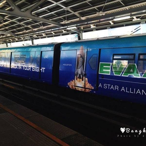 我每到一个城市或者国家,无论呆多长时间,只要当地有交通卡,我都会买一张,算是一种纪念吧,所以这次虽然只在曼谷呆1.5天,但也果断买了一张Rabbit Card。机场快线和市区BTS需要分开买票,也就是说在机场只能买机场快线的票。到达机场快线的最后一站——Phaya Thai后,要出站。然后下楼梯,跟着人群和指示牌(BTS skyline)走,穿过一个天桥,才来到Phaya Thai的BTS站台。我们坐上BTS到达了暹罗站(Siam Station)。注意从Phaya Thai station到暹罗站(Siam Station)是往“Bearing”方向。