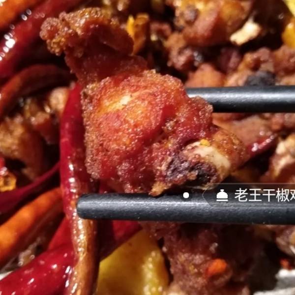老王干椒鸡上面的干辣椒看着就有食谷鸡肉很香辣,辣的直冒汗,超级过瘾!推荐爱吃辣的必点